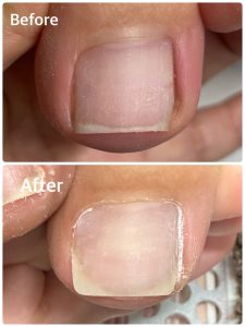 ご自分のペースで巻き爪ケアしながら、ペディキュアも楽しんでおられます。