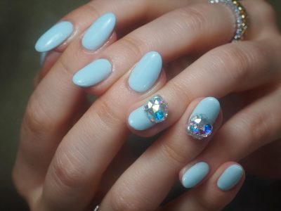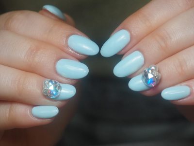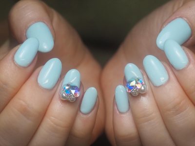 ライトブルーにオーロラビジューがマッチしていい感じ(^^)v