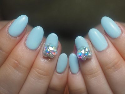 パステルマットカラー個性光るビジューネイル