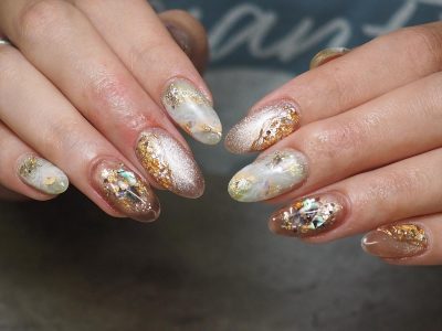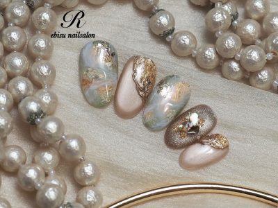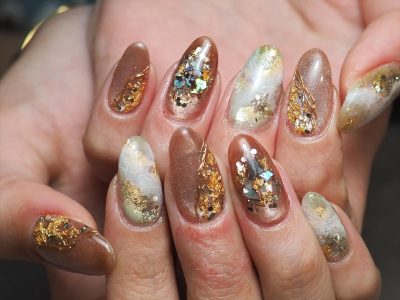 夏の終わりですが、シェルもBROWN系を使えば秋ネイルのはじめでも違和感なく楽しめます(^^♪