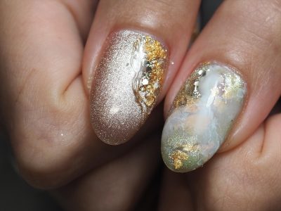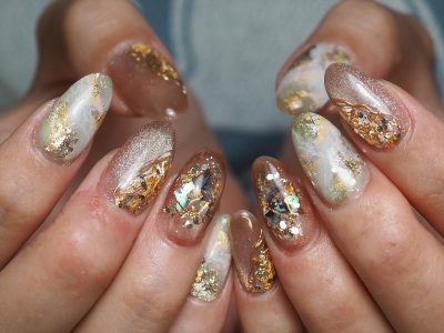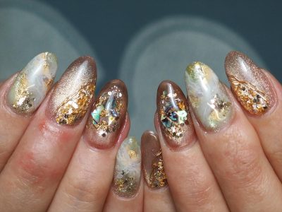 箔やミラーやマグネットやら、ありとあらゆるキラキラを詰め込んだ金銀財宝ネイル