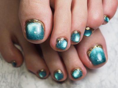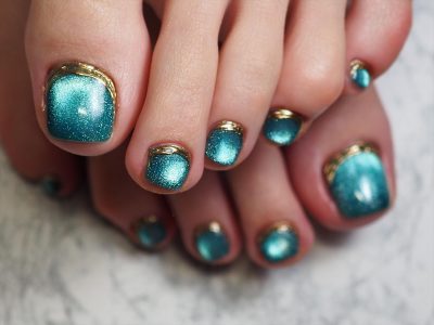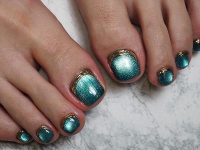 ハワイの海に映えそうな素敵なペディキュアに仕上がりました。