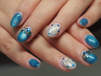 マグネットは斜めにマグネットシャワーのように動かしました。ロング美爪が生かされますね。