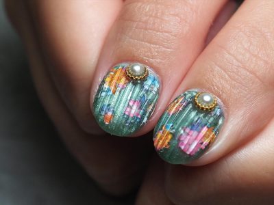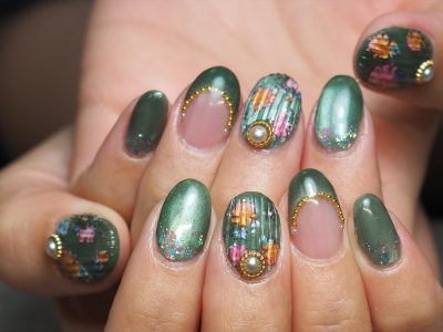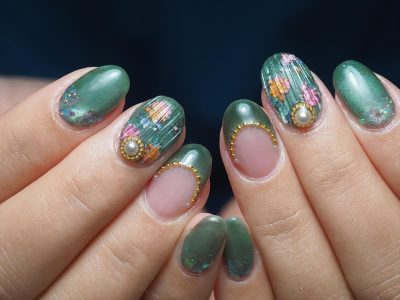 バカラネイルの奥行きの中に咲く、カラフルFLOWERがキュートなデザインです★