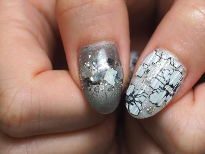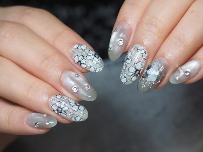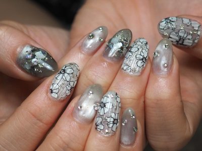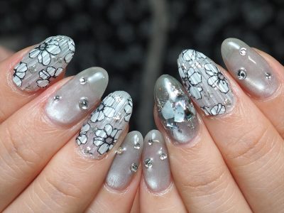 モノクロFLOWERが、バカラネイルの奥に存在感出してますね。