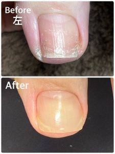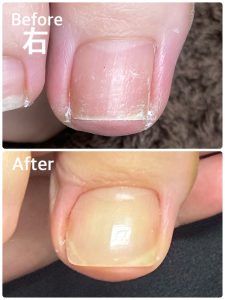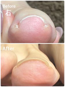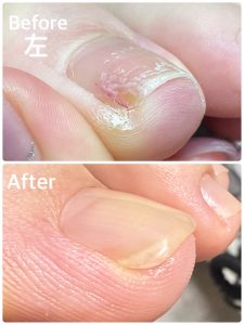 月1メンテナンスで3回の【巻き爪ケアHeySwitch】をされたお客様の結果です。