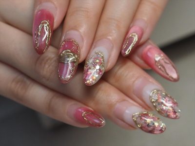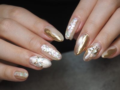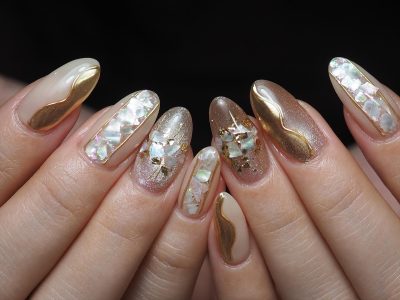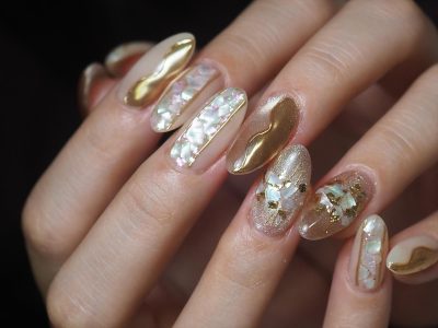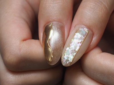 ロングネイルに映えるシェルデザイン