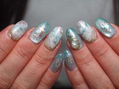 波打ち際を連想させるかのようなTHE海ネイル
