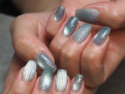 爪先フレンチもマグネットジェルがグラデーションになるように大人っぽく仕上げています。