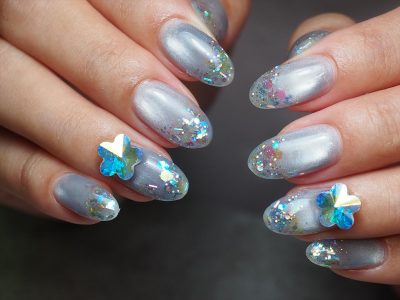 蝶々が飛んでいるかのような可愛い女の子ネイル