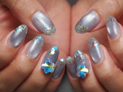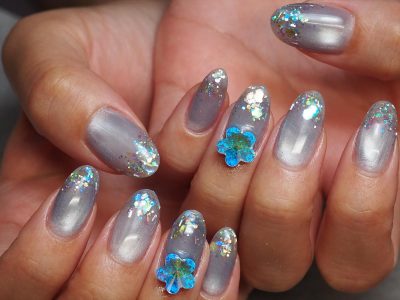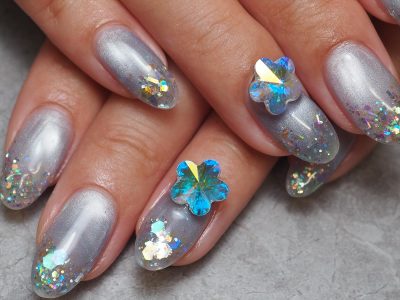 オーロラブルーに光る、フラワービジューもハマっちゃったね〜♡