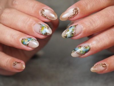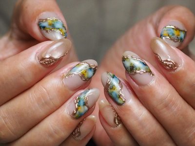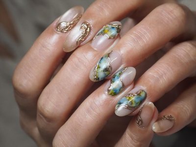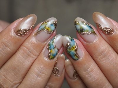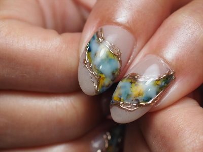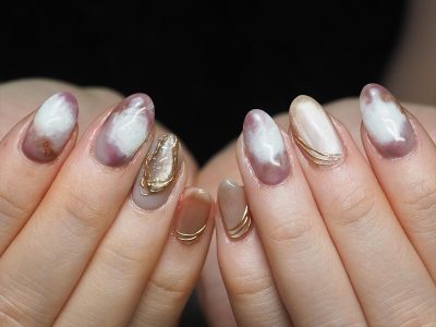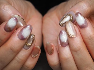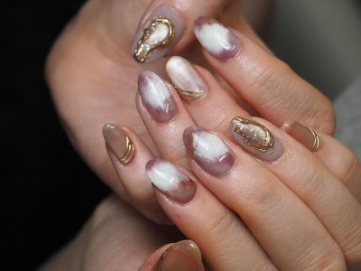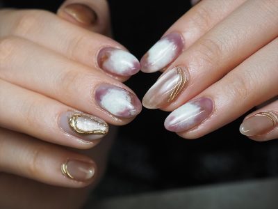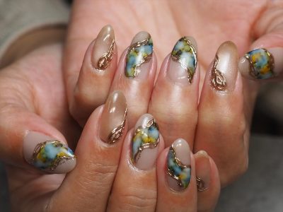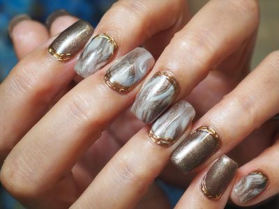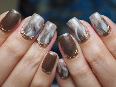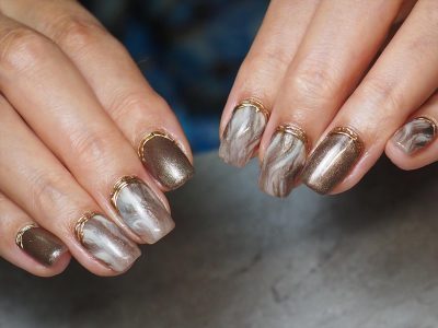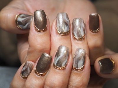 本日はダークBROWNがカッコイイ、大人のとろみマーブルネイル