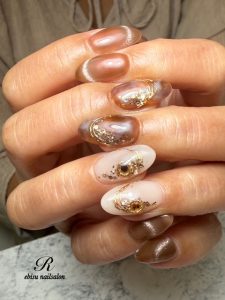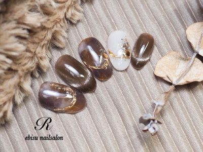 今回のネイルは、秋モードなBROWNデザインをお選び頂きました。