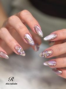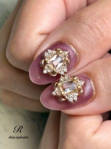 本日は雰囲気をガラリと変えて・・・いろっぽビジューネイルに変身!
