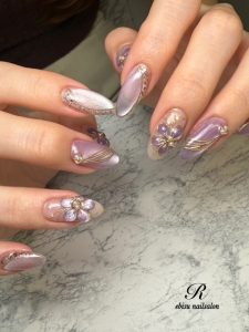 渋谷区にある「NAIL SALON (ネイルサロン) R」の『R』は、リラックス・リーズナブル・リフレッシュ・リッチ・リメンバー・リピート・レボリューションの7つの心得に由来して、日々ストレスを抱えている女性たちが心からリラックスできる上質空間をご提供致します。