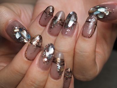 流行のBROWNをきかせたお洒落シェルネイル
