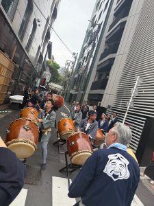 恵比寿神社前で日本太鼓の勢いあるパワーに圧倒されました! カッコイイです!!!!!! 私もやりたいな♪