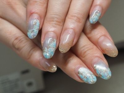 フットバス⇒ ジェルオフ⇒ 整爪⇒ シュガースクラブ⇒ 甘皮処理⇒ ジェル(カラーorラメワンカラー)⇒アート追加の場合(プラス料金)