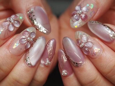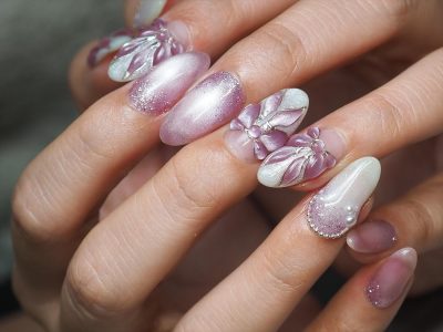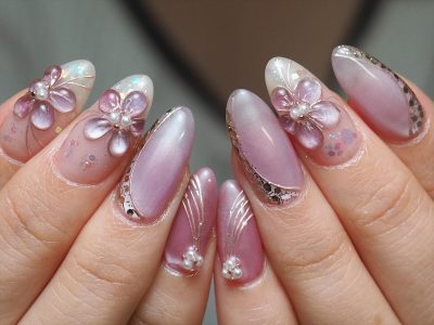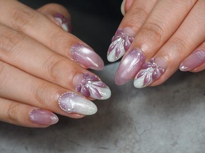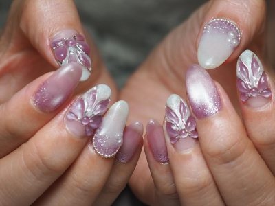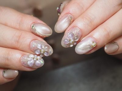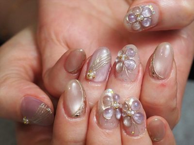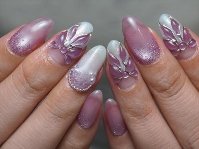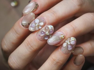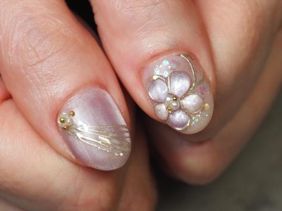 ラベンダーカラーの妖艶なぷっくりフラワーネイル