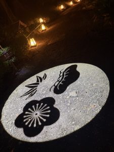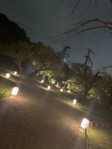 さて、庭園をお散歩してまいりましょう! ライトアップされていて素敵でした。