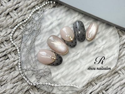 ワンカラーでもマグネットジェルだと、華やかになってGOOD★