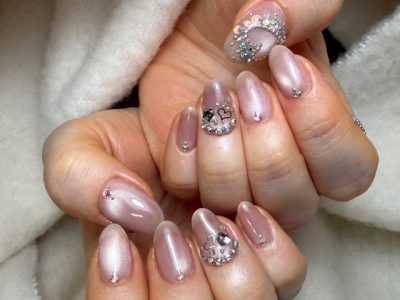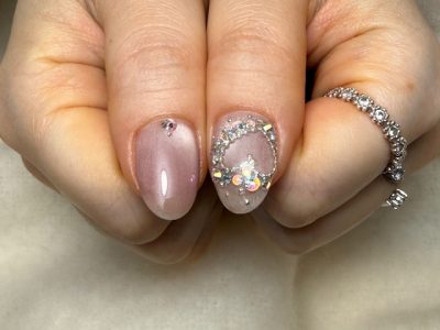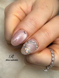 転職を考え中でおとなしめのネイルにしようと、でもキラキラは譲れない!と複雑な心境のお客様(*^_^*)