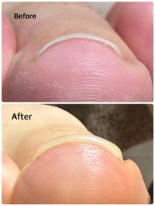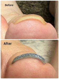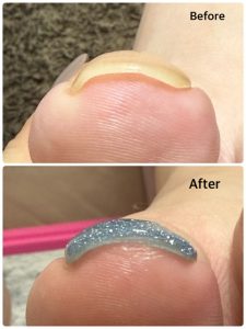 またつけっぱなしによる圧迫&乾燥で、お爪が先細になっています。