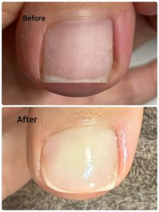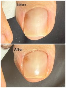 本来、痛みがある巻き爪様なので痛みもなく戻りもなくという感じでご本人のストレスにはなっていないので
