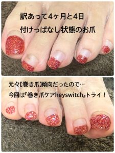 前回【巻き爪ケアHeySwitch】をされたのは、10月末(;^_^A