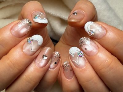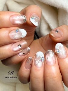 ハートフレンチ横に付けた、ちょこんとビジューがたまらなく可愛いデス♡♡♡