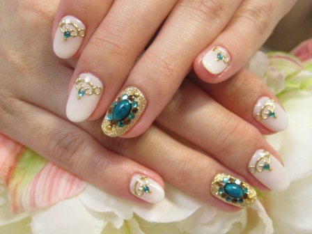 ロココシールを使用して、エメラルドグリーンのストーンと合わせると
