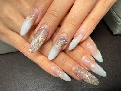 ハンドは、マグネットジェルをベースに爪先フラッシュジェル仕上げにされました。