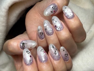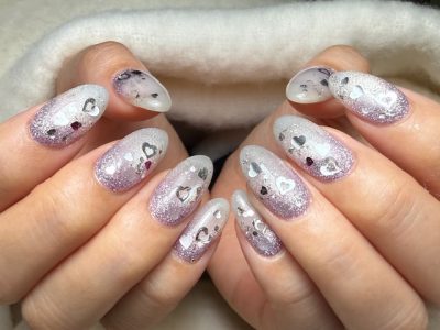SILVERハートと、少しだけPINKハートを散らして可愛さUP♥
